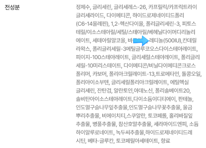 다만 전성분의 비밀 아시죠? 뒤로 갈수록 함량 낮은 거